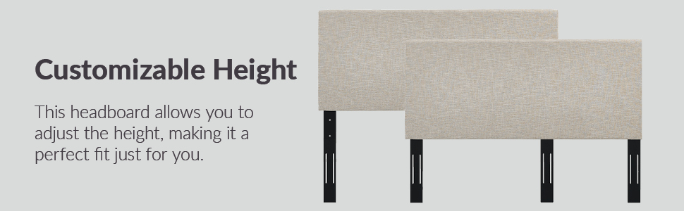PADDED HEADBOARD - This tall headboard imbues a luxe feel to peaceful nights and support while reading or reclining in bed. Claire ranges from 46 to 54 inches in height and features dense foam padding